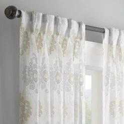 Waverly Velero Embroidered Pinch Pleated Sheer Window Curtain Panel