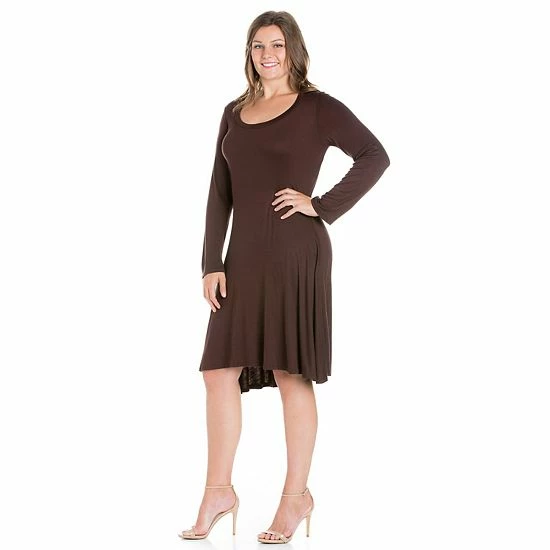 With its soft and stretchy fabric, plunging scoop neckline and trendy flared skirt, this junior’s 24seven Comfort Apparel mini dress delivers the style and comfort you’re looking for.