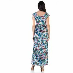 Women’s 24Seven Comfort Apparel Floral Elbow Sleeve Ruched Tulip Skirt Knee Length Dress Blue Green