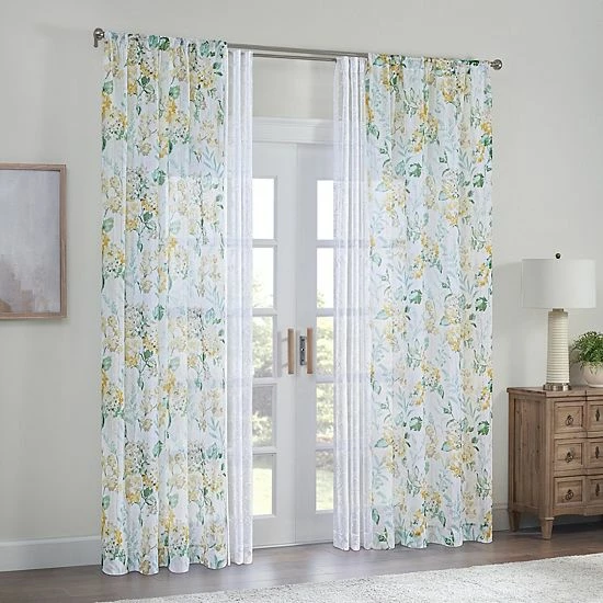 Easily elevate the look and feel of your space with this stylish Waverly Blushing Blooms Rod Pocket Sheer Window Curtain Panel.