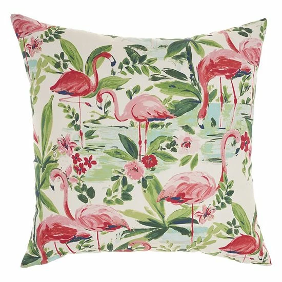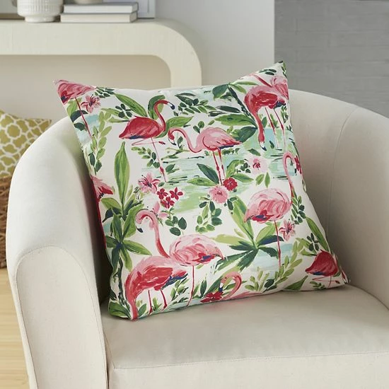 Lend a touch of wow to any living area with this Waverly Flamingos Indoor Outdoor Throw Pillow.
