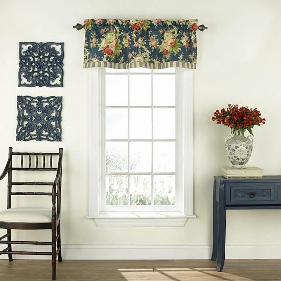 Enjoy fresh flowers all year long with this Waverly Sanctuary Rose valance. In blue.