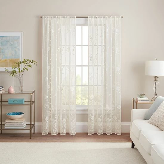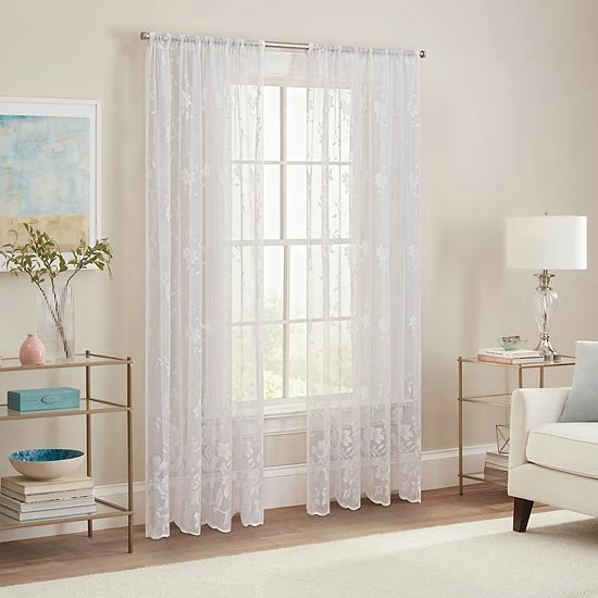 Instantly elevate the look and feel of your space with this stylish Waverly Sherry Floral Lace Sheer Rod Pocket Window Curtain Panel.