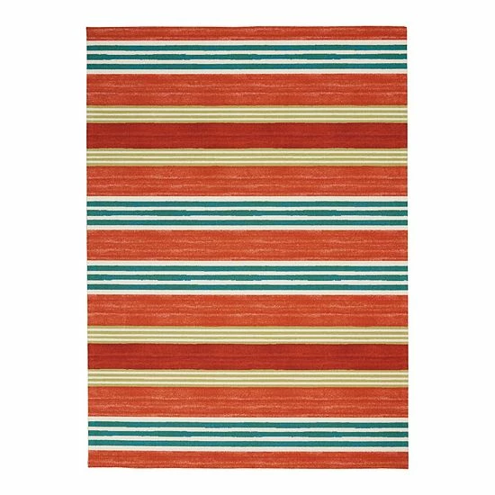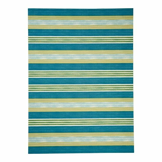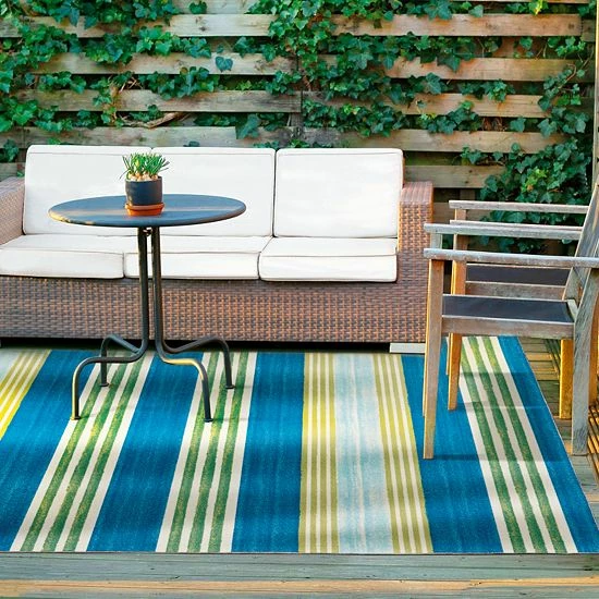 Versatility is the name of the game with this Waverly Sun N’ Shade Mykonos indoor and outdoor rug.