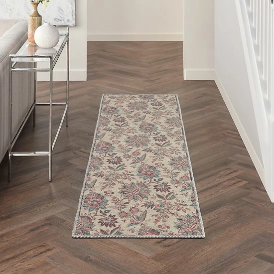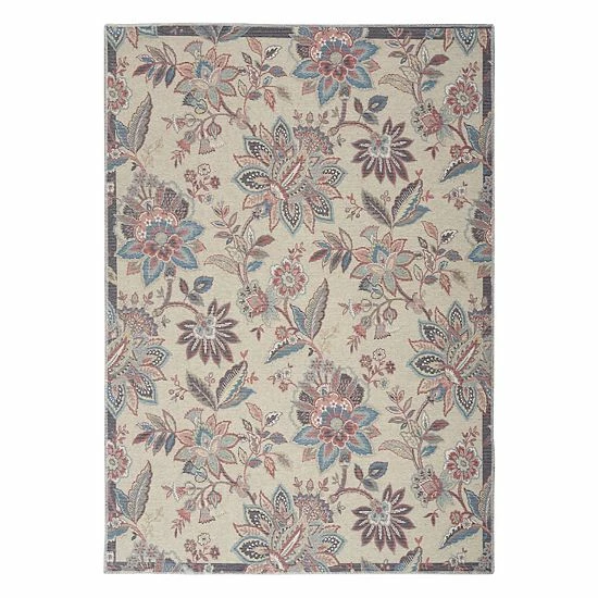 Easy care is the name of the game with this fashionable Waverly Washable Floral Area Rug.