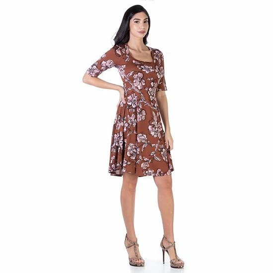 You’ll look sophisticated and stylish in this women’s swing dress from 24Seven Comfort Apparel.