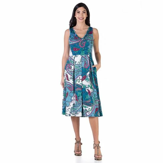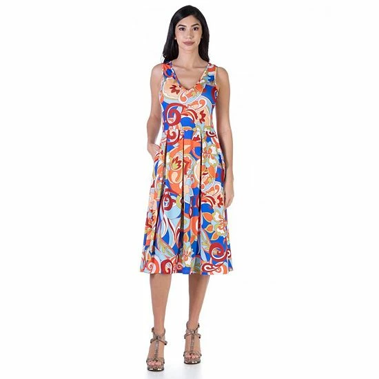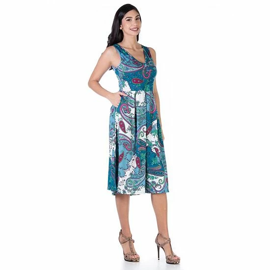 Eye-catching and elegant. You’ll love the modern look of this women’s midi dress with pockets from 24Seven Comfort Apparel.