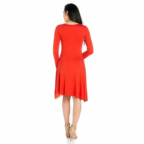 Flirty and feminine, this women’s long sleeve fit and flare dress from 24seven Comfort Apparel is sure to turn heads.