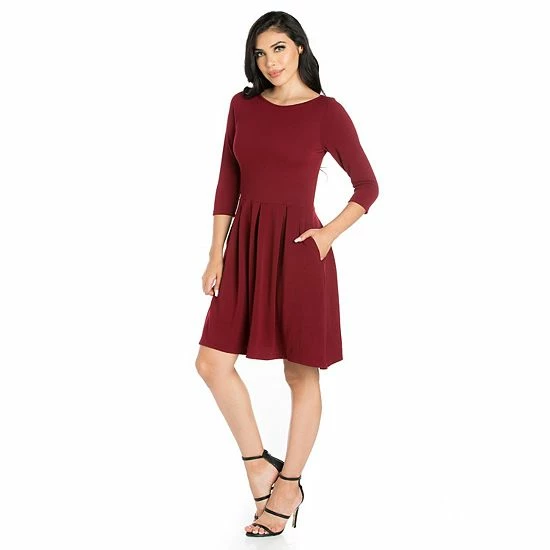 With its fun, pleated details and soft, stretchy fabric, this women’s fit and flare dress with pockets from 24seven Comfort Apparel offers the perfect mix of comfort and style.