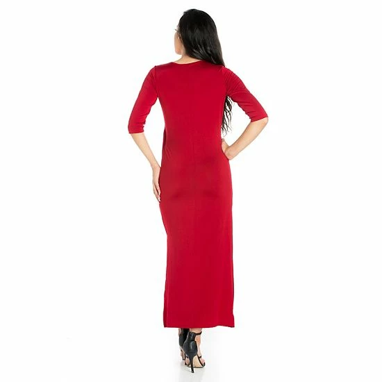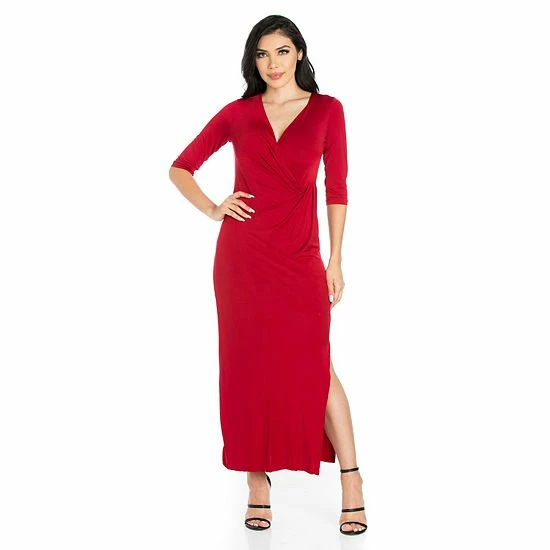 With its chic mid-thigh slit and sleek figure-flattering cut, this women’s faux-wrap evening dress from 24seven Comfort Apparel is bound to be your new fave.
