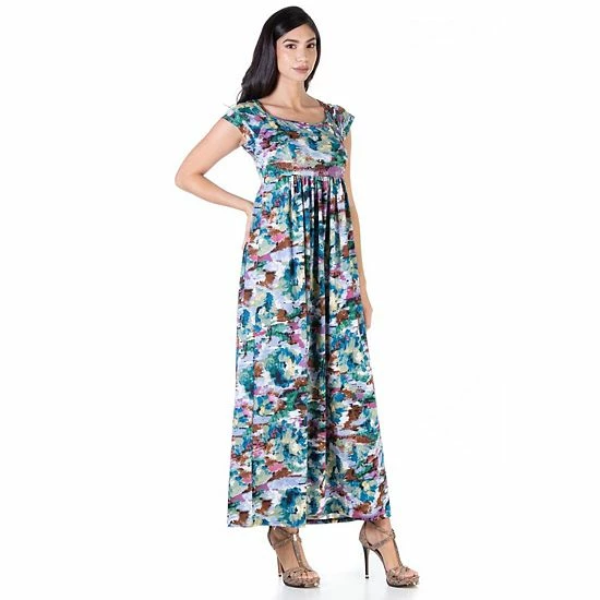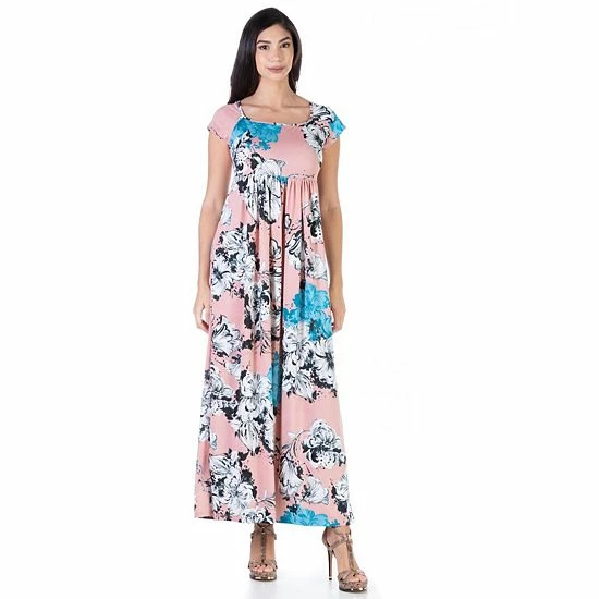Exude feminine sophistication in this women’s floral empire waist maxi dress from 24Seven Comfort Apparel.