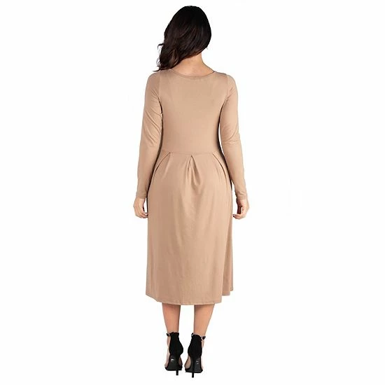 With its fun, pleated details and soft, stretchy fabric, this women’s fit and flare dress with pockets from 24seven Comfort Apparel offers the perfect mix of comfort and style.