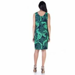 Women’s 24Seven Comfort Apparel Sleeveless Knee Length A-Line Casual Pocket Dress Green Navy